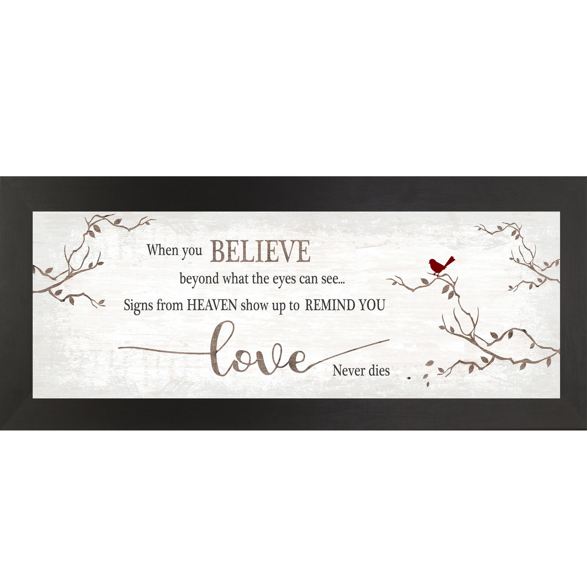 Each piece is professionally framed in a 1" solid wood frame and arrives ready to hang, offering a clean, balanced look that works beautifully on its own or as part of a gallery wall. This size is especially popular for inspirational quotes, meaningful sentiments, and calming artwork that fits effortlessly into everyday living spaces.